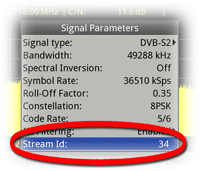 We can then enter a specific stream identifier that will be used by the field strength meter to recover the corresponding transport stream, service list and programmes data.