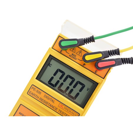 PE-335 carries out the earth resistance measurements by using the three-electrodes method. It includes an internal timer for the test functions (3 to 5 minutes) and HOLD function. It comes with standard cable and auxiliary earth spikes, all in a case containing the complete set.